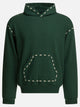 Kapital "Marionette" hoodie with soft construction made of medium-weight cotton. Construction features long sleeves, integrated hood and regular silhouette. Contrasting decorative stitching is featured along the edge of the hood, on the sleeves and around the front pocket. Patch pouch pocket provides functional space, while cuffs and hem are finished in stretch rib for added hold.