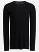 Rick Owens viscose crewneck T-shirt with lightweight construction and elongated silhouette. The main fabric provides a smooth, defined surface, while the raw-cut hem adds sharp detail to the finish. The long sleeves are stitched with linear construction, with no decorative breaks. The collar features subtle trim, keeping the line clean and minimal. Suitable for layering or as a single layer in total simplicity.