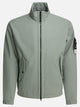 Stone Island waterproof windbreaker jacket constructed of three-layer technical material with a water column of 8000 mm. The outer surface is stretch polyester canvas made with e.dye® Waterless Color System™ technology yarns, combined with a breathable, water- and wind-resistant inner membrane, protected by a backing layer of textured polyester jersey. Regular silhouette, stiff collar, double-slider front zipper closure and elastic cuffs.