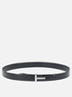 Tom Ford crocodile print leather belt features a rigid structure and linear silhouette. The metal buckle features the shape of the letter "T," a distinctive element of the collection. The surface of the belt is hand-finished with riveted edges and tonal stitching. The design features adjustable holes for fitting, and the closure is made with a concealed hook-and-loop fastener.