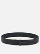 Reversible Tom Ford "T Icon" belt, constructed of calfskin with a rigid linear structure. The buckle features a T-shaped metal profile, a distinctive element of the brand. The edge is hand-finished, and the surface of the strap is smooth on both sides. The design allows use on both surfaces of the strap, maintaining regular proportions and contemporary silhouette. The integrated closure system ensures adaptability to the user.