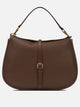 Etro "Pony" shoulder bag made of tumbled leather with maxi structure with soft lines. The model features double closure, main with magnetic button and secondary with functional metal buckle. The hobo silhouette is defined by a handle with Paisley detail positioned at the snap hooks, offering shoulder wearability. The handle and shoulder strap can be replaced with interchangeable elements. Metal accessories with a gold finish complete the construction.