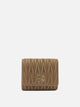 Miu Miu logo leather wallet made of matelassé leather with a compact structure and rectangular silhouette. The surface features a three-dimensional texture created by the brand's signature workmanship. The model features a snap button closure, metal lettering logo applied to the exterior and an interior layout that divides the compartments and optimizes the capacity of the slots and pockets.