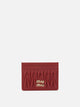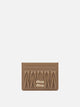 Miu Miu matelassé nappa leather card holder, constructed of matelassé-effect worked leather with a compact silhouette and simple lines. The structure integrates six card slots, organized in parallel rows, designed to distinguish and hold essential cards and documents. The outer surface features a vertical metal lettering logo applied in relief. The interior is finished with moiré lining, chosen for strength and uniformity.