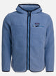 Patagonia "Retro Pile Fleece" fleece jacket, made of soft fleece brushed on both sides with 100% recycled polyester. Construction includes hood with 3-flap textured collar, center full zipper, and stretch edging profile on hem, cuffs and hood opening. Chest pocket and two mesh-lined handwarmer pockets are zippered with webbed flap. Front and back yoke outline the silhouette.