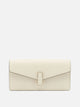 Valextra "Iside" clutch with chain, made of calfskin Millepunte leather. The short metal chain strap features a thick construction designed for shoulder wear. The compact construction houses a leather-lined main compartment, twist-look metal clasp with leather insert and hand-painted black lacquered Costa edges. Present inside is a flat pocket for credit cards.