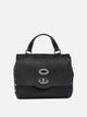 Zanellato's baby "Postina" handbag, constructed of flaky metallic leather, features a compact and rigid structure. The top flap is closed by a double metal swivel clasp with a silver finish. The leather top handle, combined with an adjustable and removable shoulder strap, provides portability and versatility of use. Metal elements finish the sides and base with studs and protective feet, while the trim is tone-on-tone smooth leather.